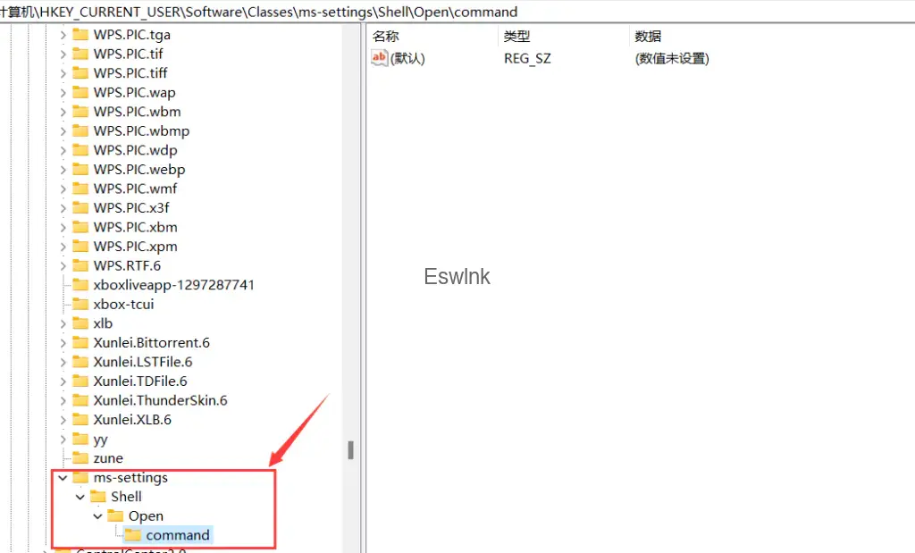打开注册表,新建上述的键ms-settings\Shell\Open\command
