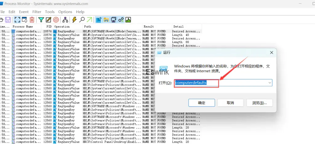随后运行ComputerDeafaults,ProcessMonitor立马会显示关于此程序的相关信息