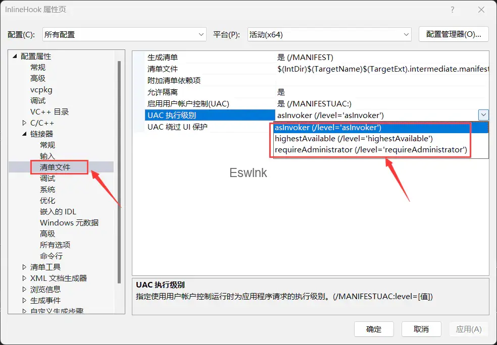 asInvoker:这是默认值。当这个值被设置时,应用程序会以启动它的用户的权限运行。如果应用程序被普通用户启动,它将会以普通权限运行;如果应用程序被管理员启动,它将以管理员权限运行。highestAvailable:当这个值被设置时,应用程序会尽可能地获取最高权限。如果应用程序被管理员启动,它将会以管理员权限运行;如果应用程序被普通用户启动,它将以普通权限运行。requireAdministrator:当这个值被设置时,应用程序总是以管理员权限运行。如果应用程序被普通用户启动,UAC会弹出一个对话框,要求用户输入管理员账户的密码