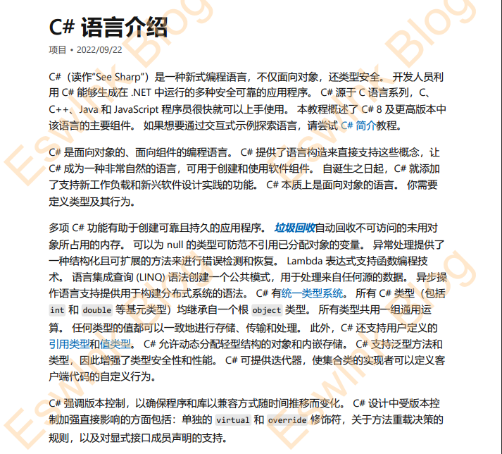 「PDF资源」C#11.0官方中文文档 API手册