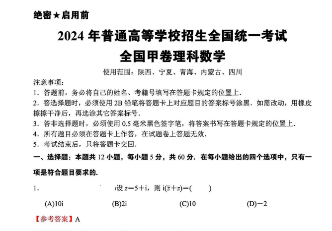「PDF分享」2024年高考全国甲卷数学试题真题答案解析