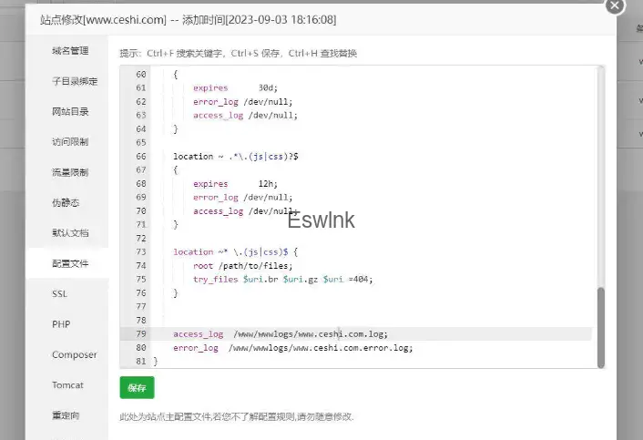 接着,在网站的Nginx配置中,我们需要添加以下内容: