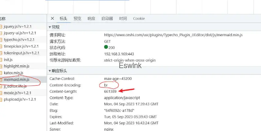 可以看到,浏览器确实是以十进制计算,并且采用的是向上取整的方式。除了查看字节数确认配置是否生效外,我们还可以通过查看文件头信息中的Last-Modified字段来验证配置的修改时间。需要注意的是,头信息的Last-Modified字段时间是UTC时间,可以通过JavaScript的Date对象将其转换为本地时间进行比对。