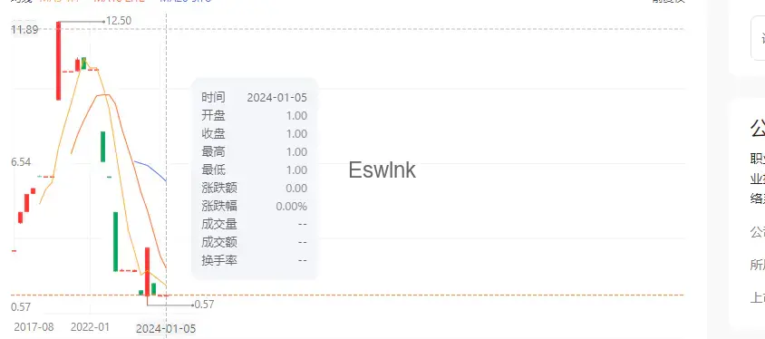 Ok,这里我们来看一下粤嵌。讲师上来就介绍自己叫「夏天」,我去他们官网问了客服,根本不认识,疑点重重。他们报了自己的股票代码一查吓一跳,股票价格从以前的12.5跌倒如今的0.57,到底经历了些什么啊!