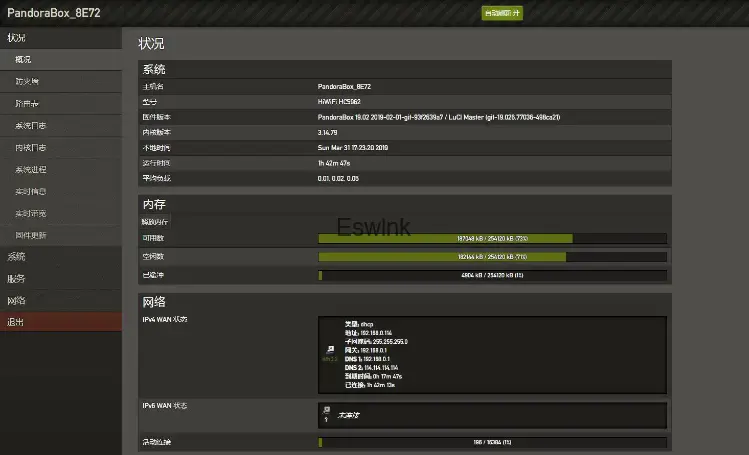 在备份好 EEPROM 和编程器固件后,选择固件更新。点击固件选项右边的浏览按钮,找到刚刚下载的 PandoraBox-ralink-mt7621-hc5962-2019-02-01-git-0231ad4b5-squashfs-sysupgrade.bin 固件文件,上传并更新。等待路由器重启完成。