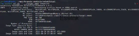 >>>python2 vol.py -f ../Target.vmem imageinfo
