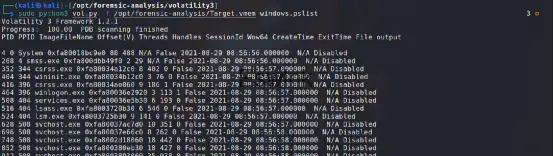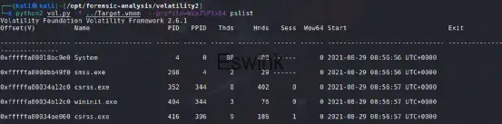 >>> python2 vol.py -f ../Target.vmem --profile=Win7SP1x64 pslist