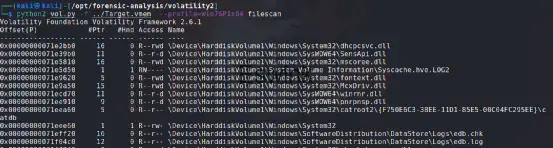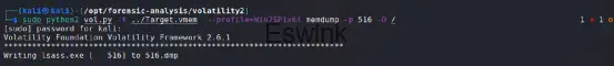 >>>sudo python3 vol.py -f /opt/forensic-analysis/Target.vmem windows.pslist --pid 516 --dump(4) 查看文件目录