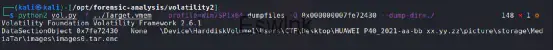 >>>python2 vol.py -f ../Target.vmem --profile=Win7SP1x64 dumpfiles -Q 0x000000007fe72430 --dump-dir=./