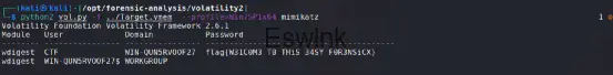 >>> python2 vol.py -f ../Target.vmem --profile=Win7SP1x64 mimikatz
