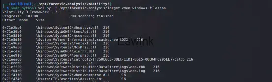 >>> python2 vol.py -f ../Target.vmem --profile=Win7SP1x64 filescan