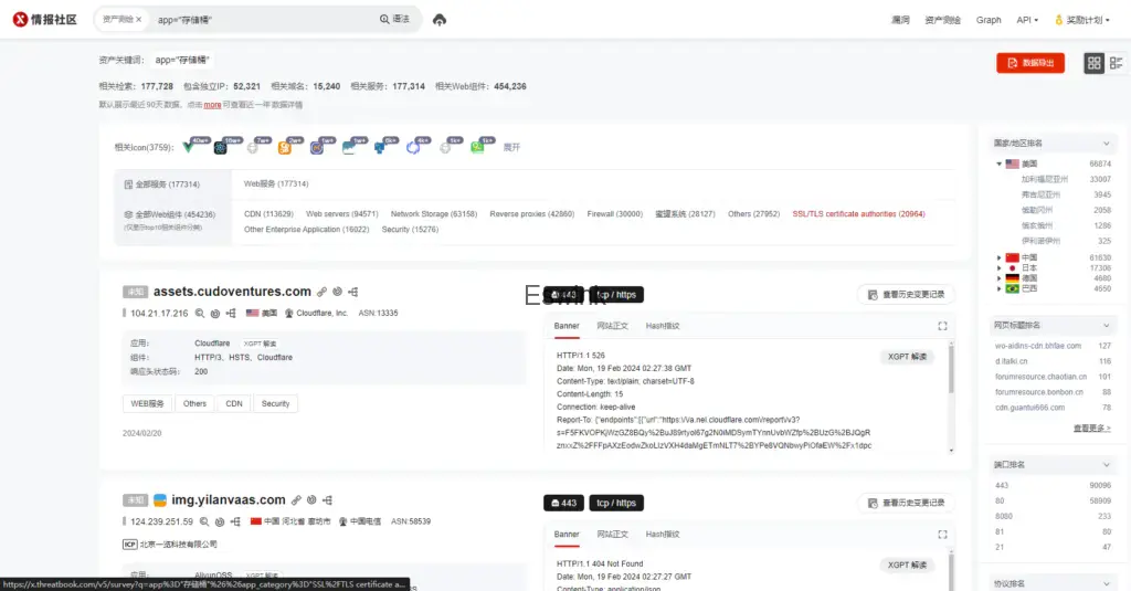 1、查询全网公开的存储桶 语法:app=”存储桶” 语法链接:https://x.threatbook.com/v5/survey?q=app%3D%22%E5%AD%98%E5%82%A8%E6%A1%B6%22