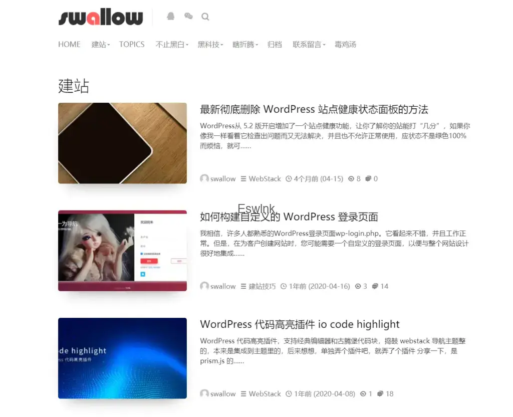 主题提供了6种样式的文章列表,随你喜好自由切换。