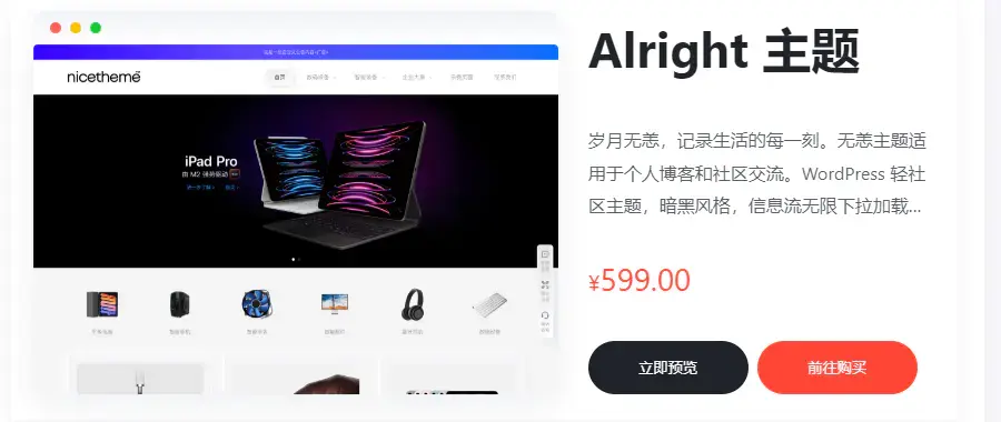本文介绍了仿制的一个区块,用于展示主题。区块依赖于「Genesis Custom Blocks PRO」插件,并展示了其在电脑端的效果。HTML代码构建了区块的布局结构,包括左侧的模拟图和右侧的主题描述、价格及按钮区域。CSS代码则定义了区块的样式,如阴影效果、布局比例、字体大小及颜色等,并提供了移动端自适应样式。相关字段图展示了区块中使用的变量和参数。