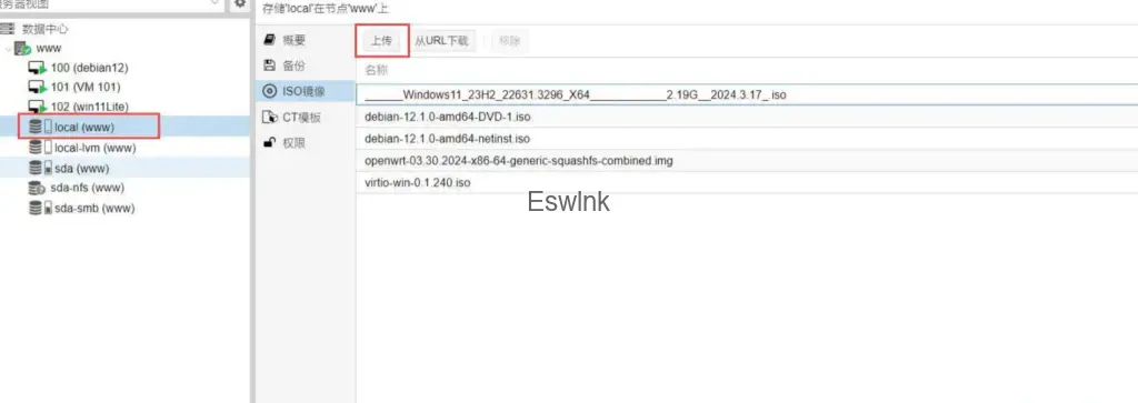 得到镜像后还是老规矩,直接上传到pve的镜像管理中去。