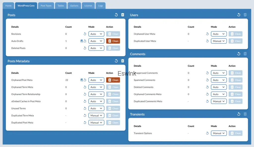 清理数据库的最佳 WordPress 插件。友好的用户界面,包含大量功能,支持各种规模的数据库