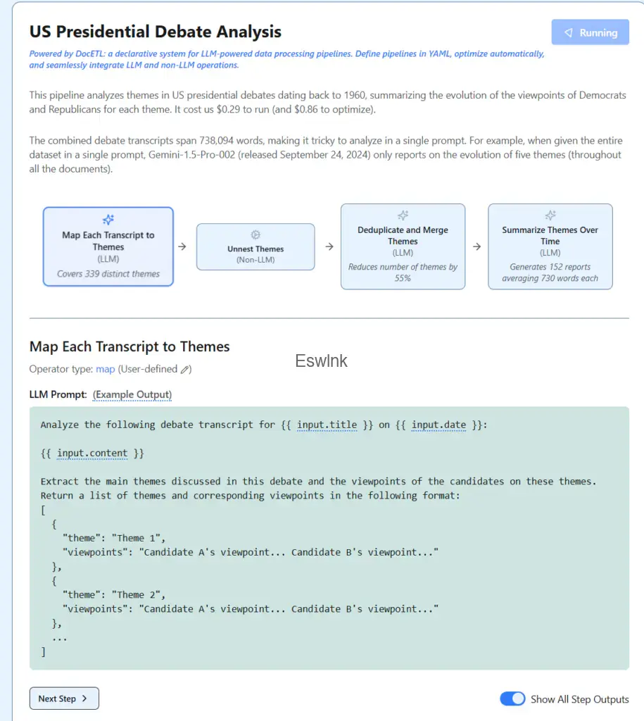 - 应用场景:DocETL可广泛应用于法律文件、学术文献、商务报告等领域,尤其适用于需要高度自动化处理和质量评估的文档场景。