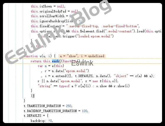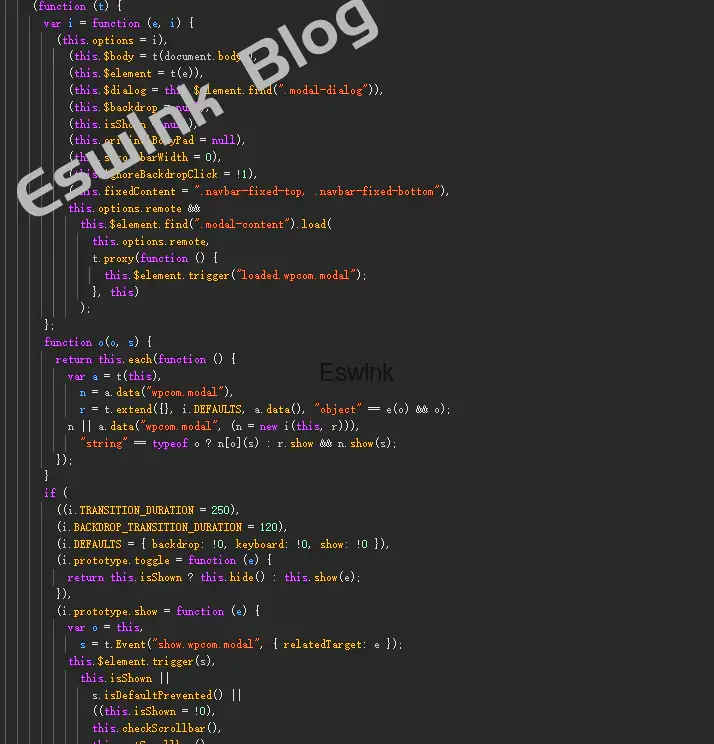 Uncaught TypeError: jQuery(…).modal is not a function貌似是这个modal的原因,通过查询jQuery的文档我们得知,这个应该是由bootstrap的相关API来控制的,但是我看了下插件,并没有这个依赖项,那这部分应该是WPCOM自己编写的。不错,点个赞,这个做法极大降低了与其他主题或者插件的冲突性。