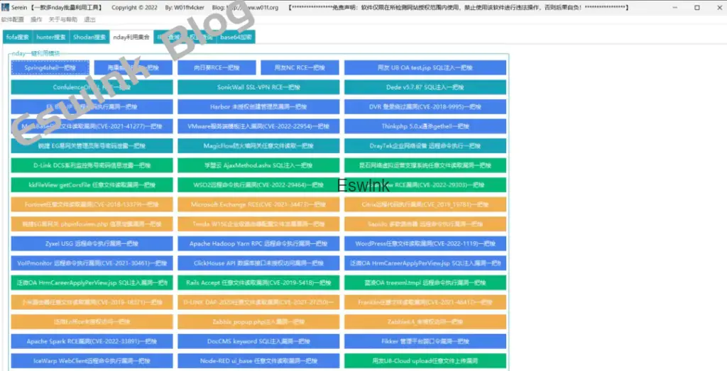 我们先简单介绍一下:Serein一款图形化工具,支持批量采集 URL,并对采集到的 URL 进行各种 n-day 漏洞检测。该工具可广泛应用于 SRC 挖掘、CNVD 漏洞挖掘、0day 利用、构建个人武器库等场景。尽管市面上已有许多可用于利用 1-day 漏洞的工具,也有不少支持自定义武器库的工具,Serein 的独特之处在于其集成了反查域名与权重查询 API 功能,帮助用户实现一站式的漏洞检测和武器库构建。
