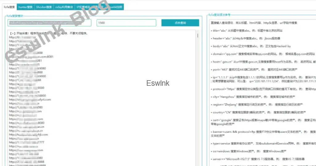 通过 Fofa 搜集相关的 URL,可以看到搜索到的 IP 自动附加了 http:// 和 https:// 协议,直接可以进行利用。