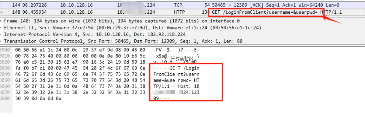 数据流无明显流量特征。最明显的特征一为客户端连接的时候走的是HTTP流量,登录方式为GET