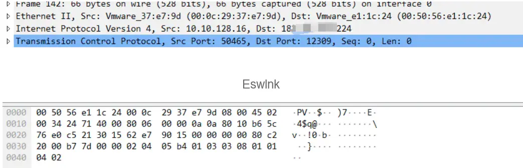 第一条TCP流量客户端连接了VPS的服务端口12309