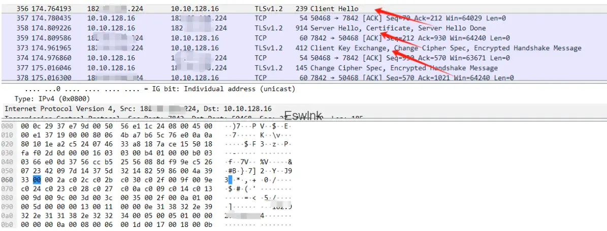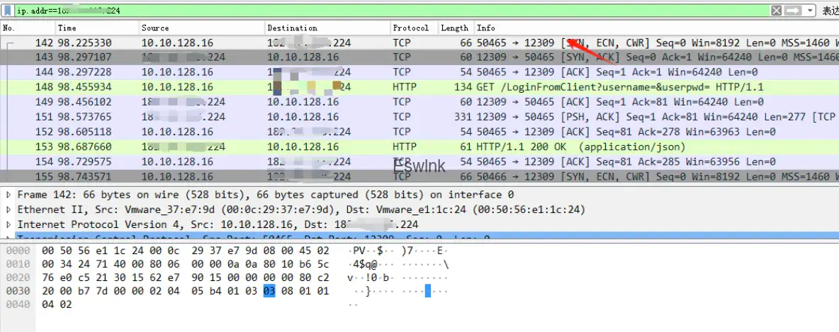 使用wireshark进行抓包分析,检索所有目的指向VPS的流量ip.addr == x.x.x.x