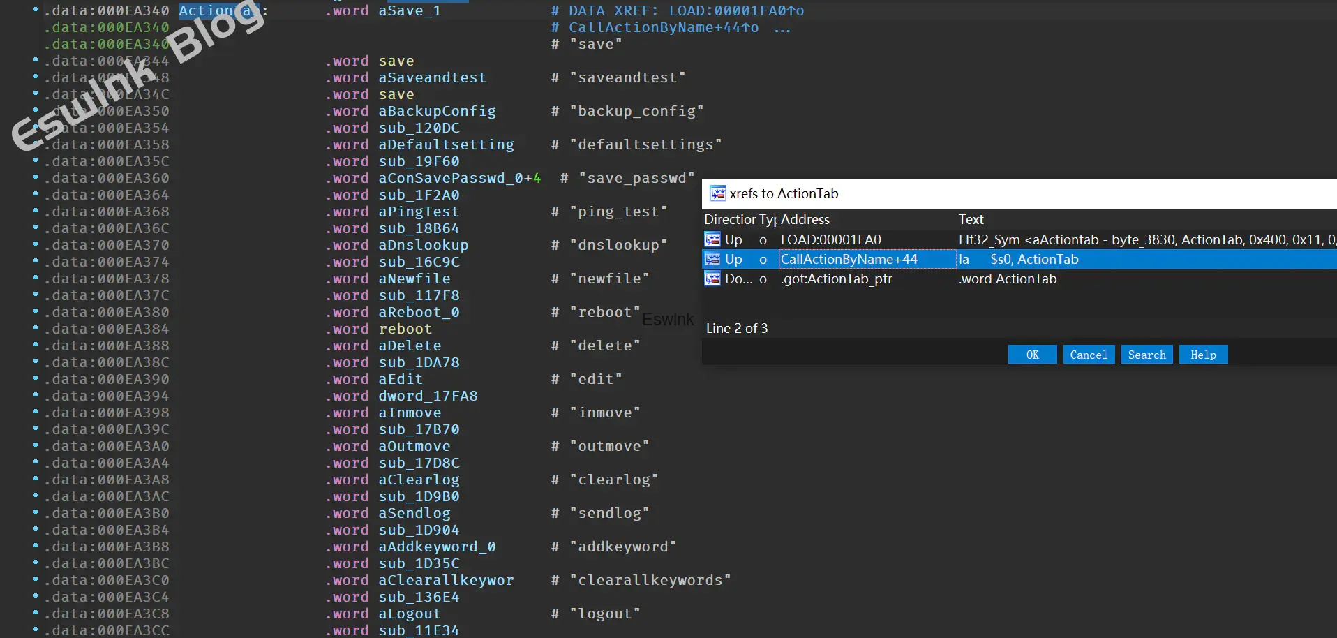 其中函数CallActionByName通过查ActionTab表比对参数todo的值方式来调用函数todo中的参数对应函数