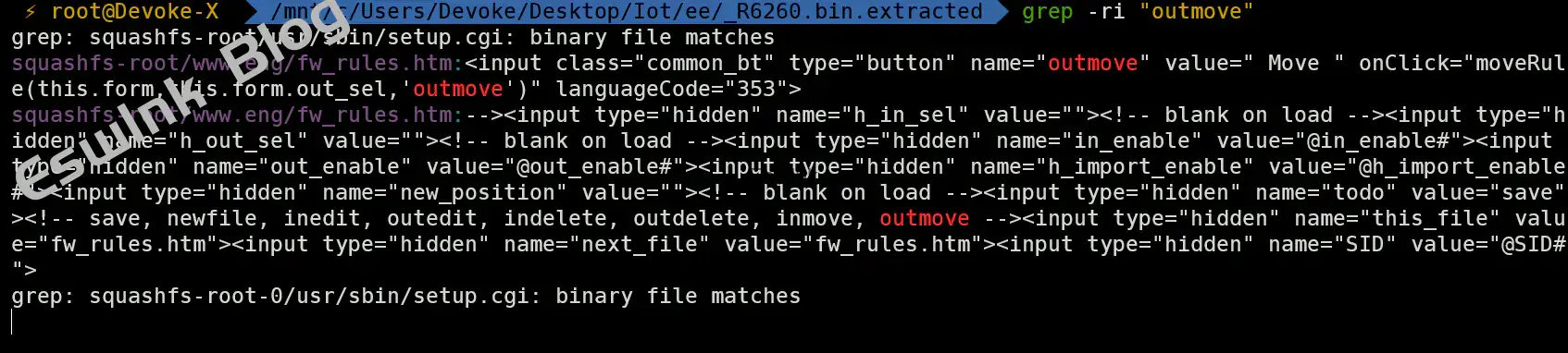 在开始漏洞挖掘之前,我们需要下载并解包目标路由器的固件。以某厂商路由器为例,首先从其官网下载固件,并使用 binwalk 进行解包操作: