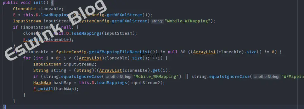 在WFMapping#init中加载配置文件初始化到变量E中,