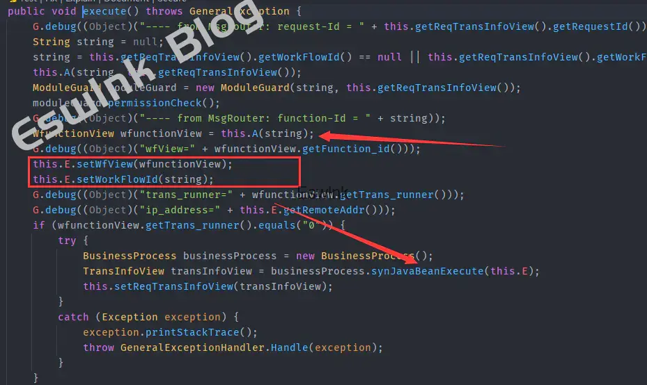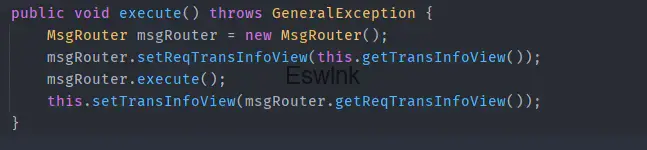 在MsgRouter#execute()方法中会调用WFMapping#init(),同时调用businessProcess.synJavaBeanExecute()来反射调用对应mainclass中的execute方法,相关代码如下