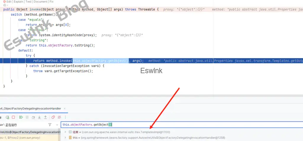可以看到逻辑,还是一样的,不过区别在于我们的对象是 this.objectFactory.getObject()获取的了