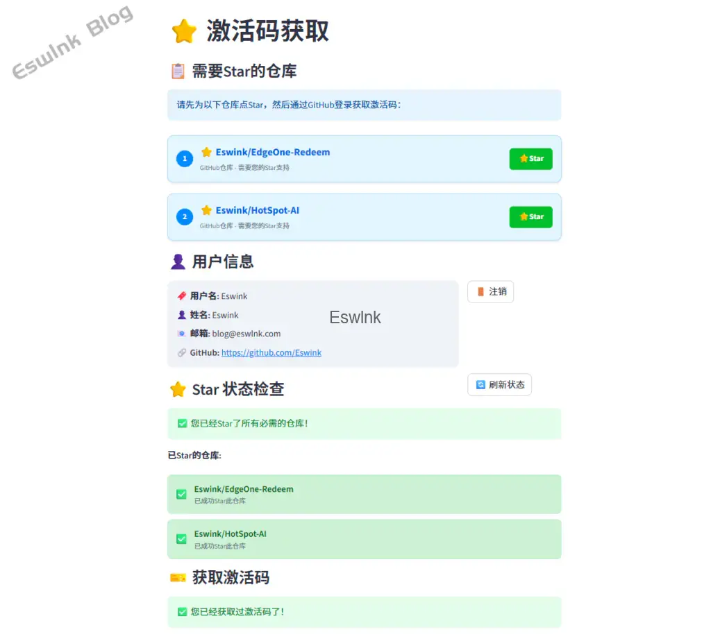本着白嫖的互联网精神,我上线了一个邀请码兑换系统,用户可通过Github授权登录为博主的设定的相关Github仓库Star即可免费获得一枚邀请码。