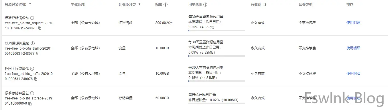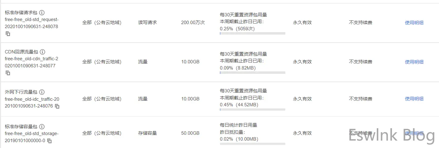 接下来我便过渡到了 CloudFlare+B2 存储的,B2 一样是宽带同盟的成员,因此流向 CloudFlare 的流量也可以免掉。B2 提供了 10G 不收费存储和若干不收费请求 / 天。不过 B2 的 S3 协议并不在 lsky pro 图床以及 Taio 图床工具的支持范围,因此应用此计划只能通过 PicGo 进行上传,手机则暂时不用考虑了。非常后想到了腾讯云另有老用户赠送的资源包,那为什么不用腾讯云呢?