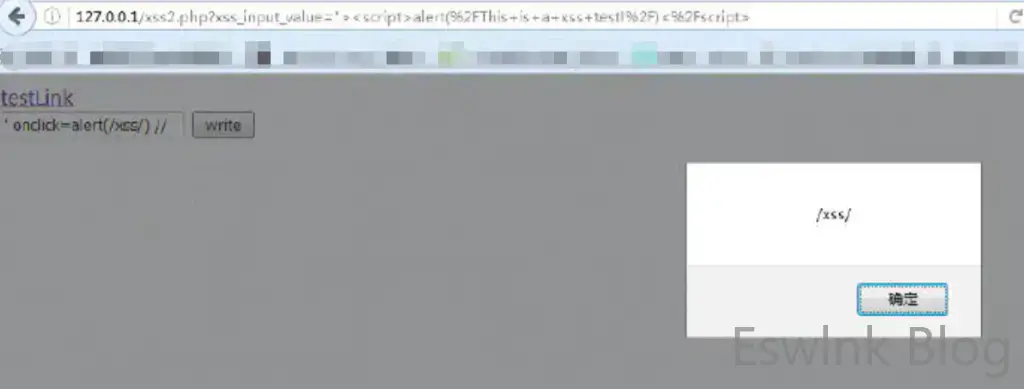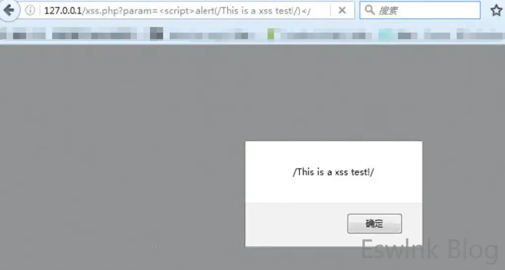 http://127.0.0.1/xss.php?param=<script>alert(/This is a xss test!/)</script>你会看到, alert (/Test!/)在目前的网页上进行了以下操作: