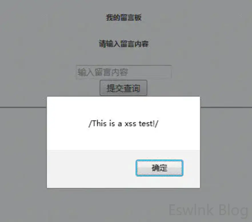 "><script>alert(/This is a xss test!/)</script>(">是用来闭合input标签)当正常用户想要来查看留言板的内容时这条恶意代码就会被浏览器加载并执行