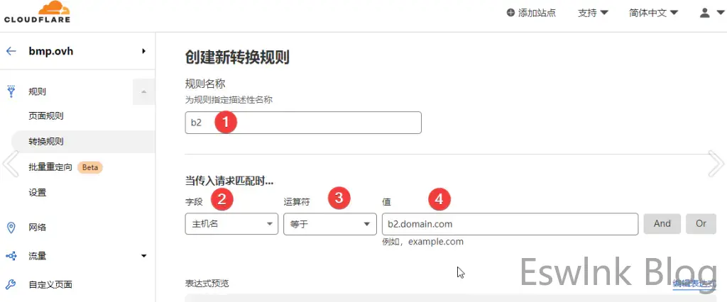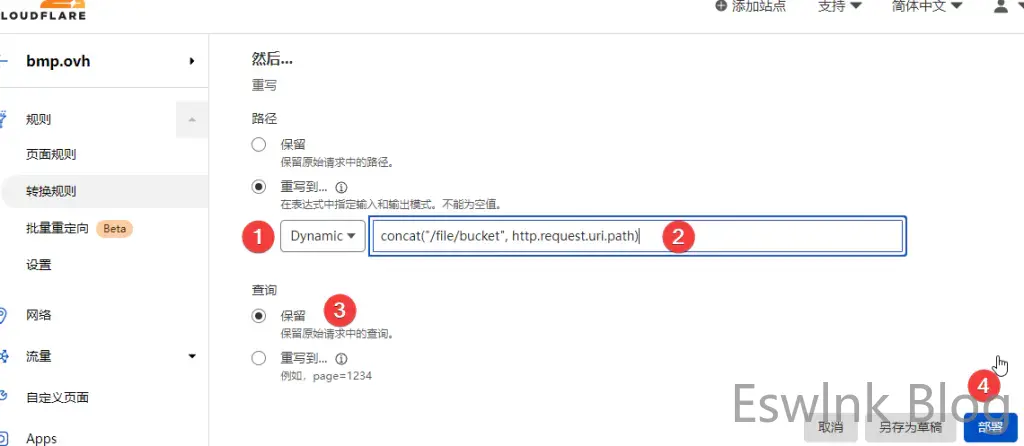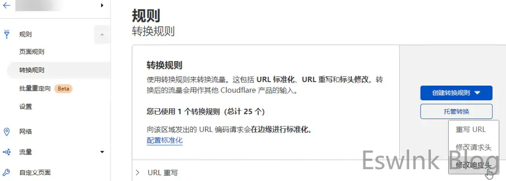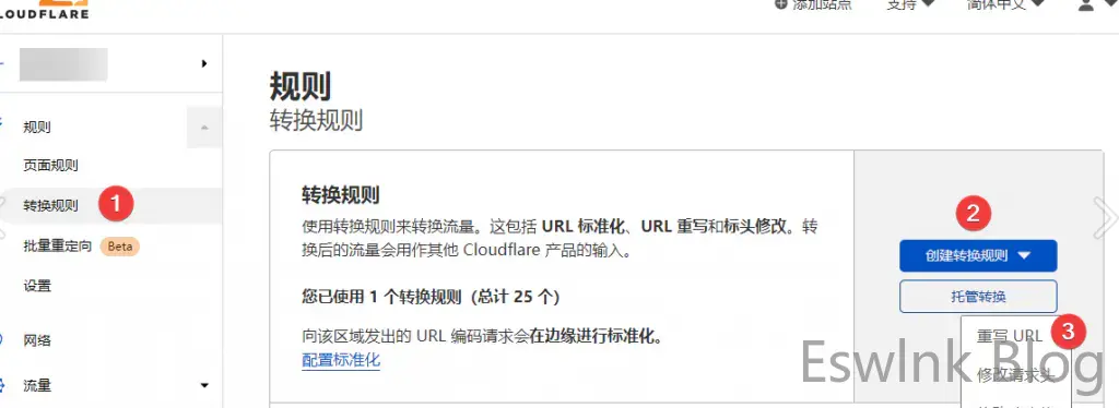 CloudFlare后台 – 规则 – 转换规则 – 创建转换规则 – 重写URL