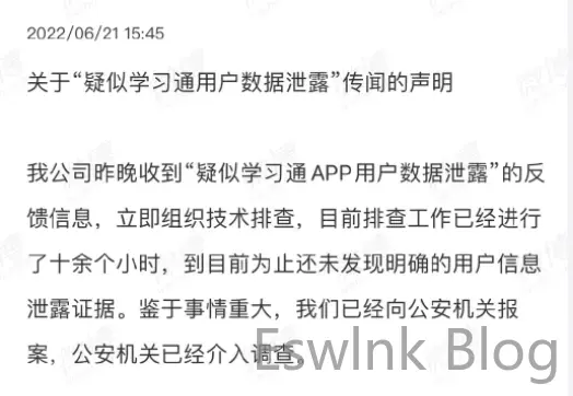 据报道,大学生学习软件“#超星学习通”的数据库信息近日被公开出售。其中,泄露的数据包括学校名称、姓名、手机号码、学号、工号、性别、邮箱等共计1.7273亿条。其中包括用户 ID,用户昵称,密码等等。