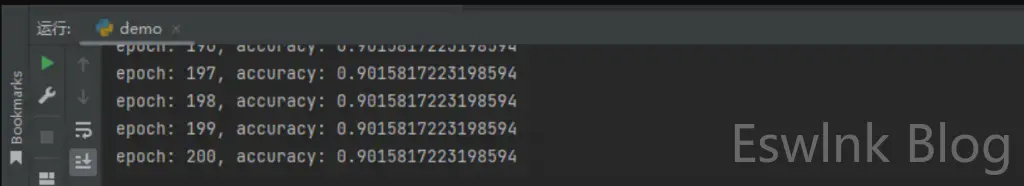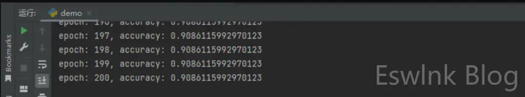 return self.sigmoid(self.linear2(x))然而,非常不幸的是只去修改 forward 方法存在非常严重但又极其隐蔽的问题,在说出这个问题是什么的真相之前我首先给出该案例的完整代码,如下所示。