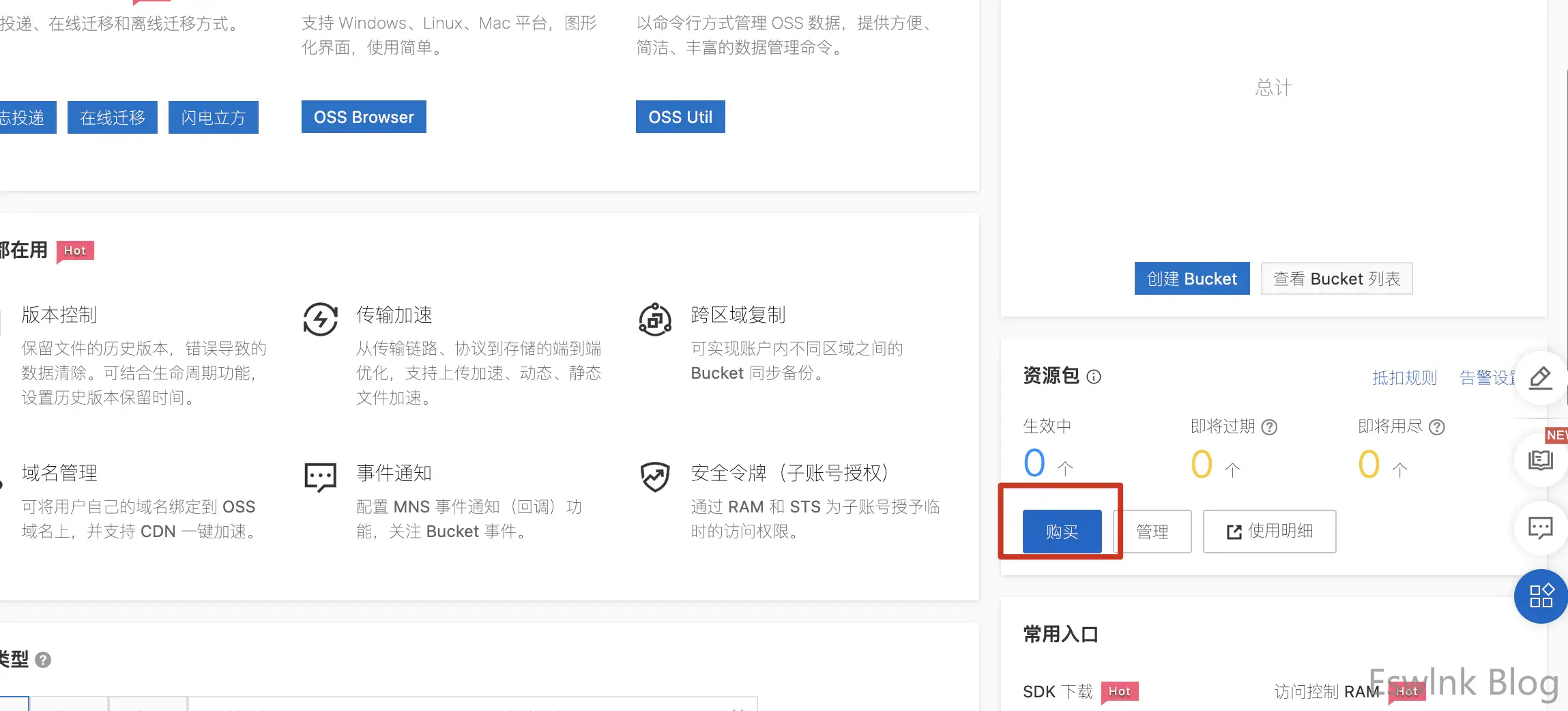 购买完了OSS(和CDN),接下来就可以开始创建存储块了。