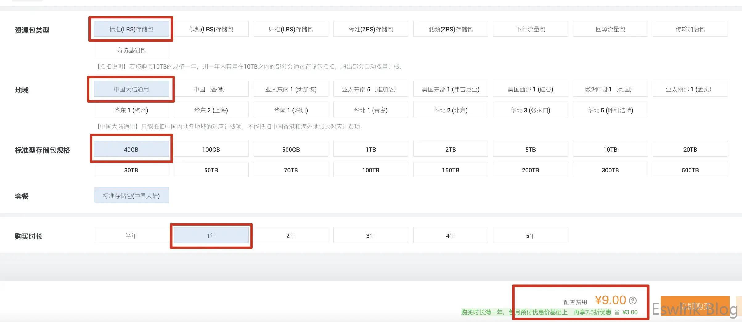 首先,购买这个1年9块钱40G的标准存储包,但这只是买到存储空间,也就是说9块钱,可以在1年内往OSS里存储40G的东西。