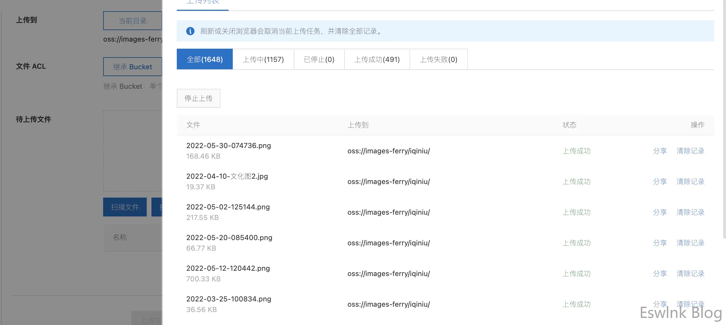 可以上传所有本地图片。在阿里云OSS后台可以看到所有上传的文件和流量服务信息。