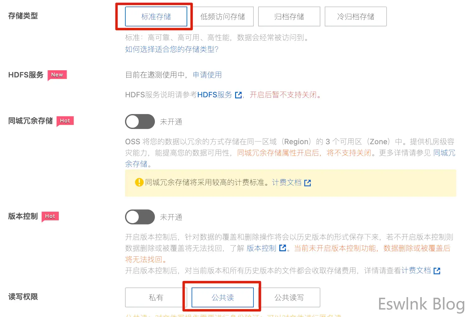 根据提示填写名称,配置。注意:Bucket 名称要全网唯一,读写权限改为公共读。
