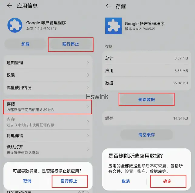 2.打开设置-应用和服务-应用管理,强行停止Google Play 商店,强行停止Google 服务框架并删除数据,强行停止Google 账户管理程序并清除数据。