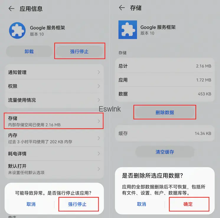 9.打开设置-应用和服务-应用管理,强行停止Google Play 商店,强行停止Google 服务框架并删除数据,强行停止Google 账户管理程序并清除数据。