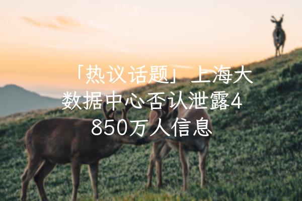 2022年8月12日18时42分,上海大数据中心仍否认泄露4850万人信息。近日,一篇名为4850万上海用户的随申码被泄露的消息在网上流传开来。记者在网上论坛上看到,有人以4000美元(人民币26936元)的价格将上海随申码数据库拍卖,发帖者称该数据库中包含了4850万名上海随申码数据,“自上海推行随申码以来,居住或访问过上海的所有人员信息。”