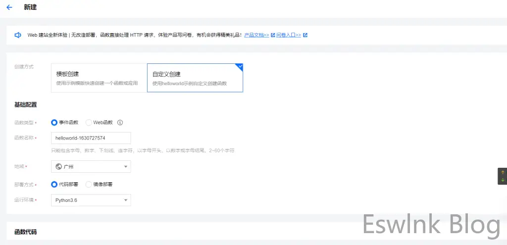 然后就是注册一个腾讯云账号,然后前往腾讯云函数控制台 控制台链接,创建一个自定义的腾讯云函数,运行环境是python3.6