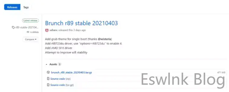 2、前往https://github.com/sebanc/brunch/releases下载 Brunch构建框架。