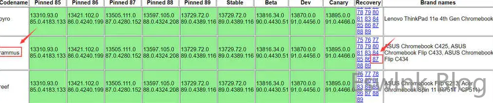 4、前往https://cros-updates-serving.appspot.com/下载 Chrome OS恢复镜像。